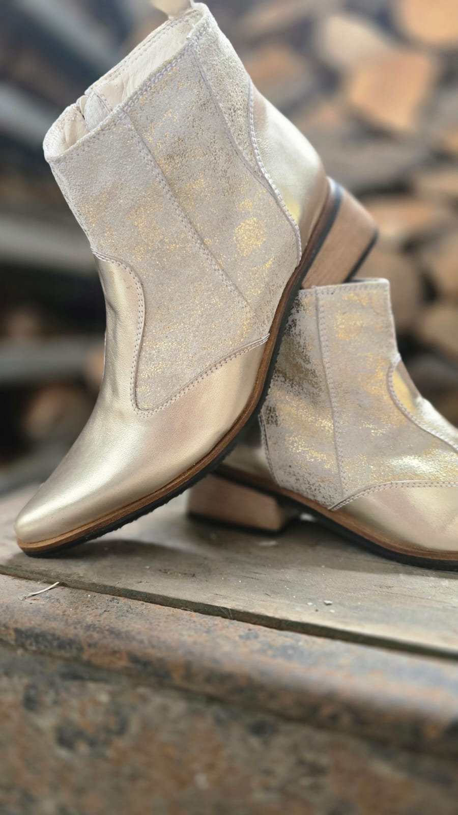 Descubre la elegancia y comodidad de las Botas Paris. Hechas 100% de cuero nacional, estas botas doradas con detalles en dorado brilloso son la tendencia de la temporada. Disfruta del lujo y estilo en cada paso con estas botas exclusivas. ¡Haz una declaración de moda con las Botas Paris!
