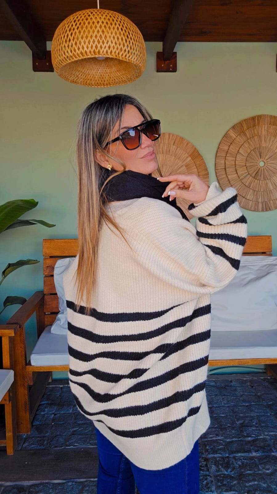 El Sacon Mimo es un saco de lana a rayas perfecto para un look casual y cómodo. Su diseño relajado y las rayas le dan un estilo fresco y moderno, ideal para usar en el día a día. Además, la lana ofrece calidez y suavidad para mantenerte abrigado sin perder estilo.